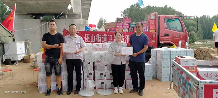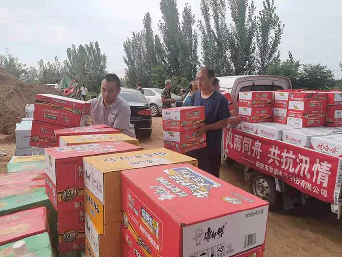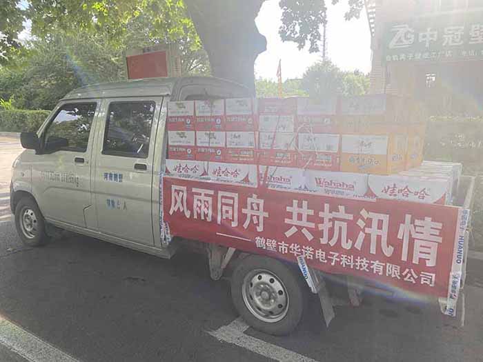 7月27日,鶴壁市華諾電子科技有限公司載著滿車的物資、載著鶴壁華諾廣大員工對(duì)災(zāi)區(qū)群眾的牽掛,赴浚縣災(zāi)情一線捐助礦泉水、方便面、電風(fēng)扇等急需物資,以實(shí)際行動(dòng)為鶴壁抗汛防洪工作貢獻(xiàn)一份綿薄之力。